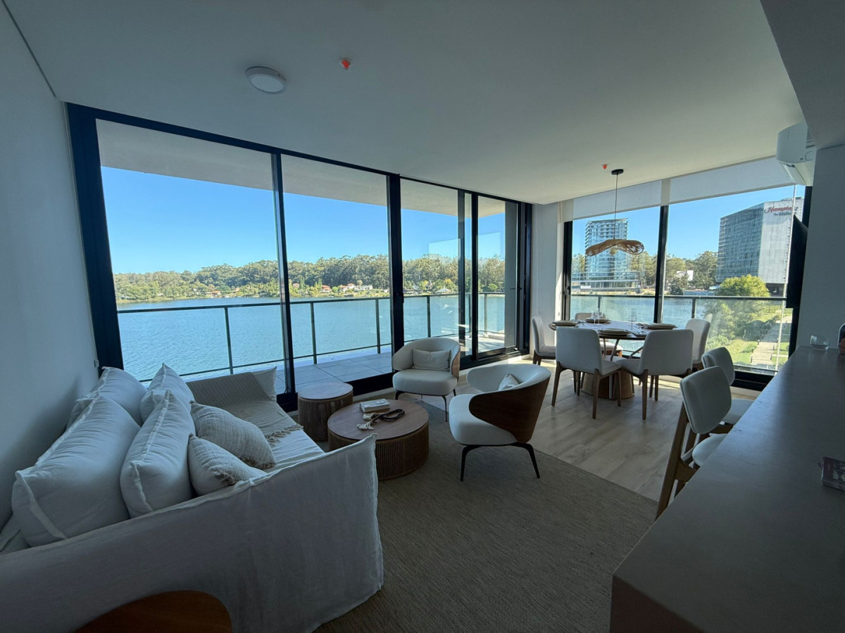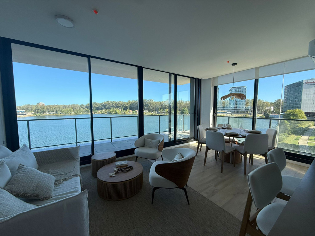Living comedor con salida a terraza al frente con vistas al lago Cocina integrada con salida a terraza lavadero 3 dormitorios, 2 con salida a terraza 1 baño completo Edificio cuenta con seguridad, piscina interior y exterior climatizadas, áreas cowork, gimnasio, playroom, barbacoas.
