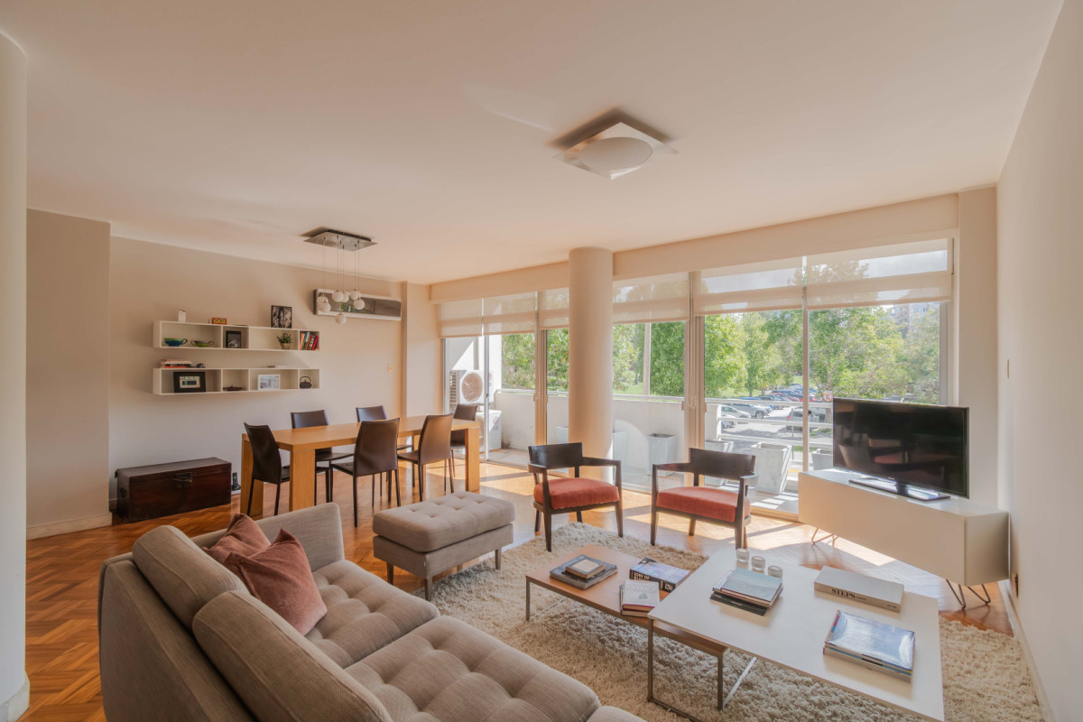 Living comedor apaisado y salida a gran terraza Amplia cocina con office y antecocina Estar 3 dormitorios de muy buen tamaño con placar 2 baños completos Dependencia de servicio completa Calefacción por losa radiante central y agua caliente central (incluido en gastos comunes) Garaje para 1 auto (No fijo) Entrada recientemente reformada Calefacción por losa radiante central Agua caliente central, ambas incluidas en los gastos comunes Portería presencial de lunes a sábados (7 a 12 y 18 a 22 hs)