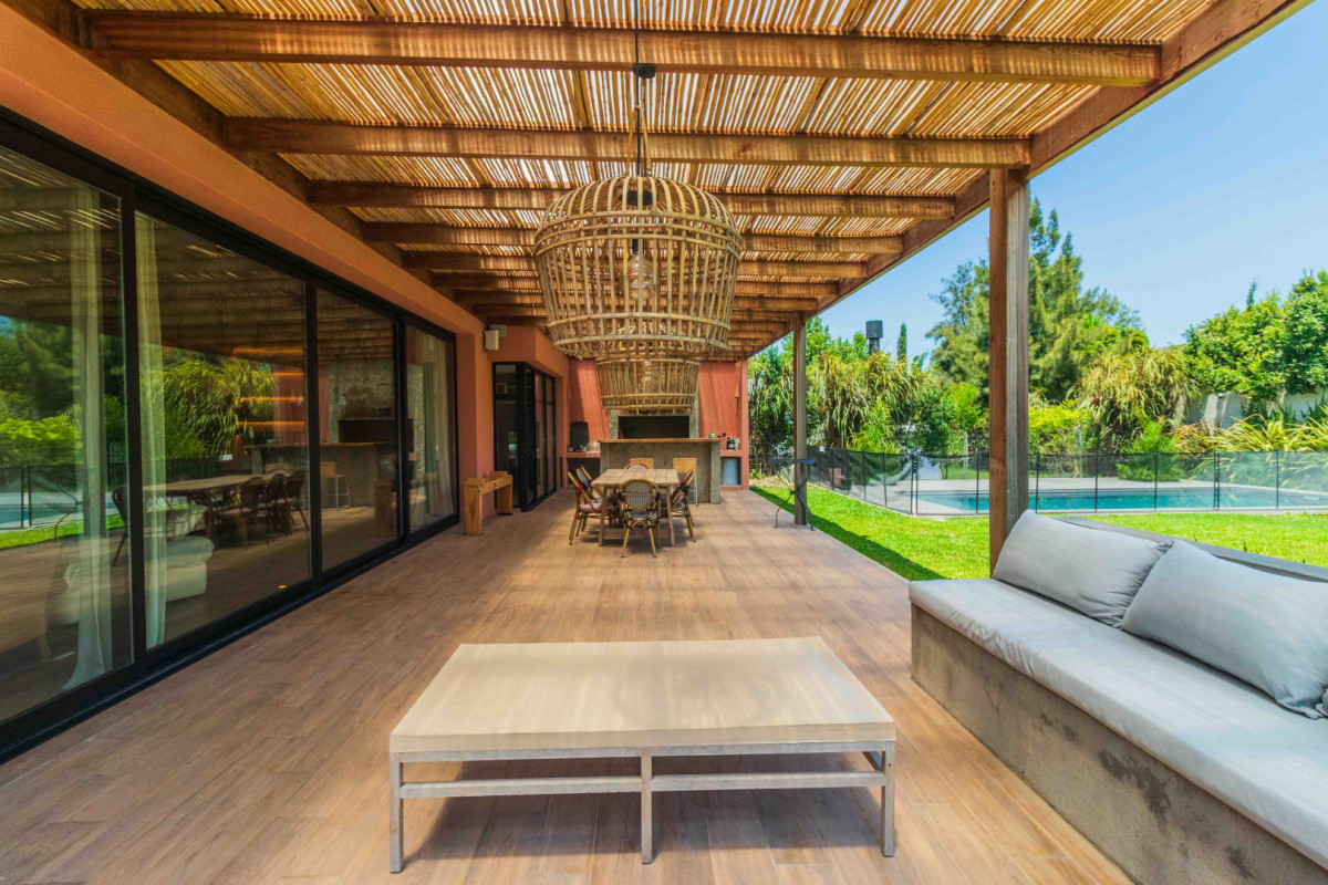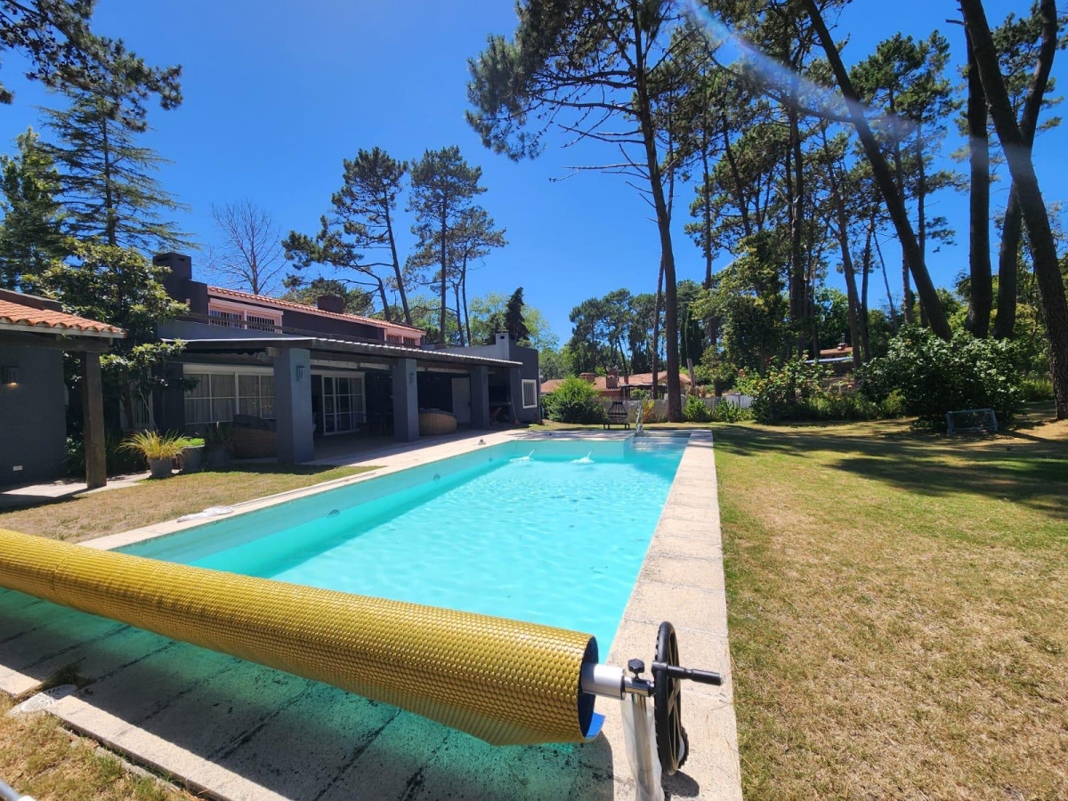 - 5 dormitorios (3 en suite) + servicio completo - 5 baños + 1 toilette (baño social) - Amplio living comedor c/estufa a leña - Cocina semi abierta - Toilette - Lavadero - Patio de servicio - Acceso de servicio Desarrollada en 2 niveles. Metraje total interior = 280m2 (180m2 en PB + 100m2 en PA) - Piscina c/deck + parrillero c/deck pergolado - Lavadero interior (incorporado a la casa) y patio de servicio c/deck pergolado - Estacionamiento para dos autos - Calefacción por losa radiante eléctrica. - Aire Acondicionado frío/calor en todos los ambientes (incluido servicio) - Estufa a leña en Living comedor y suite principal - Pisos de microcemento y aberturas en aluminio anodizado blanco c/termo panel (doble vidrio c/cámara)