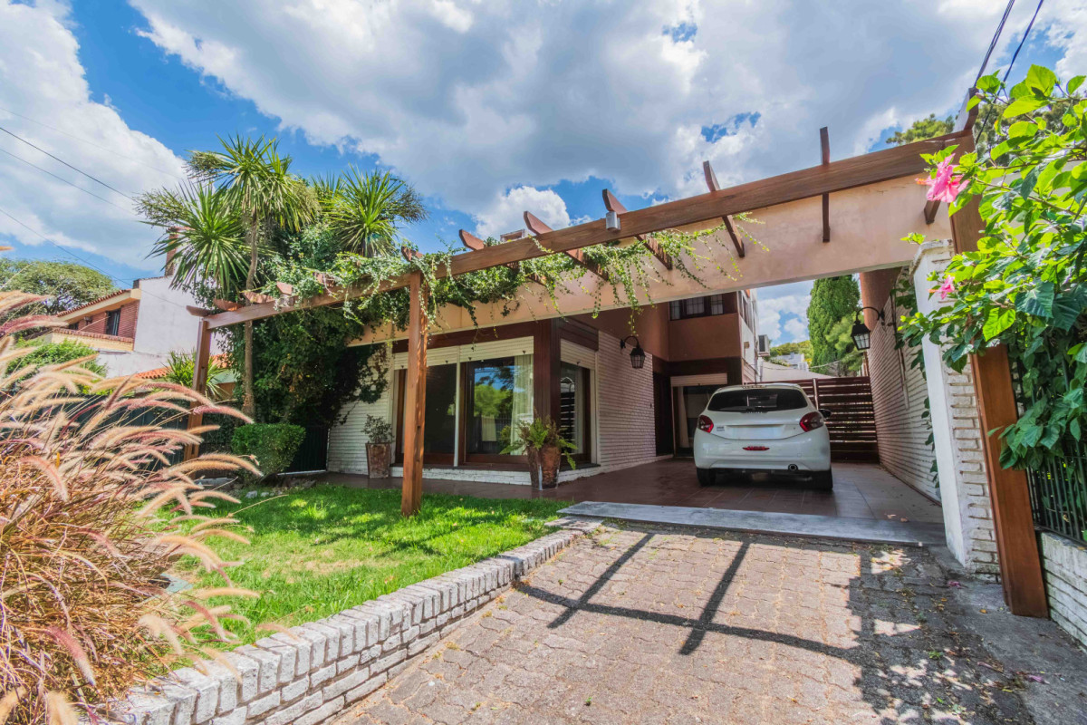 Amplia casa de 220 metros totales construidos. Living comedor con estufa a leña y salida a jardín Cocina definida con isla Escritorio al frente 3 dormitorios, principal en suite con vestidor y los demás con placares 1 baño social 2 baños completos Jardín con barbacoa y piscina Garaje para 4 autos Cuenta con cámaras perimetrales y seguridad 24 hs.
