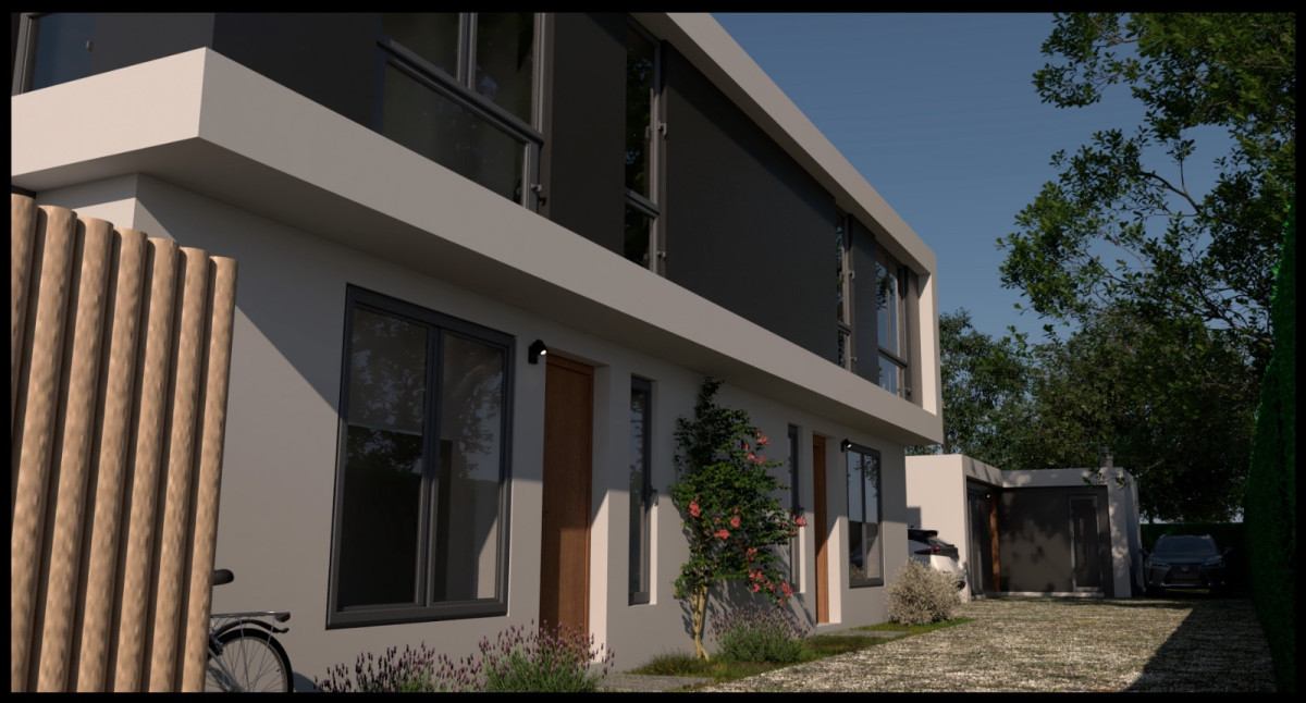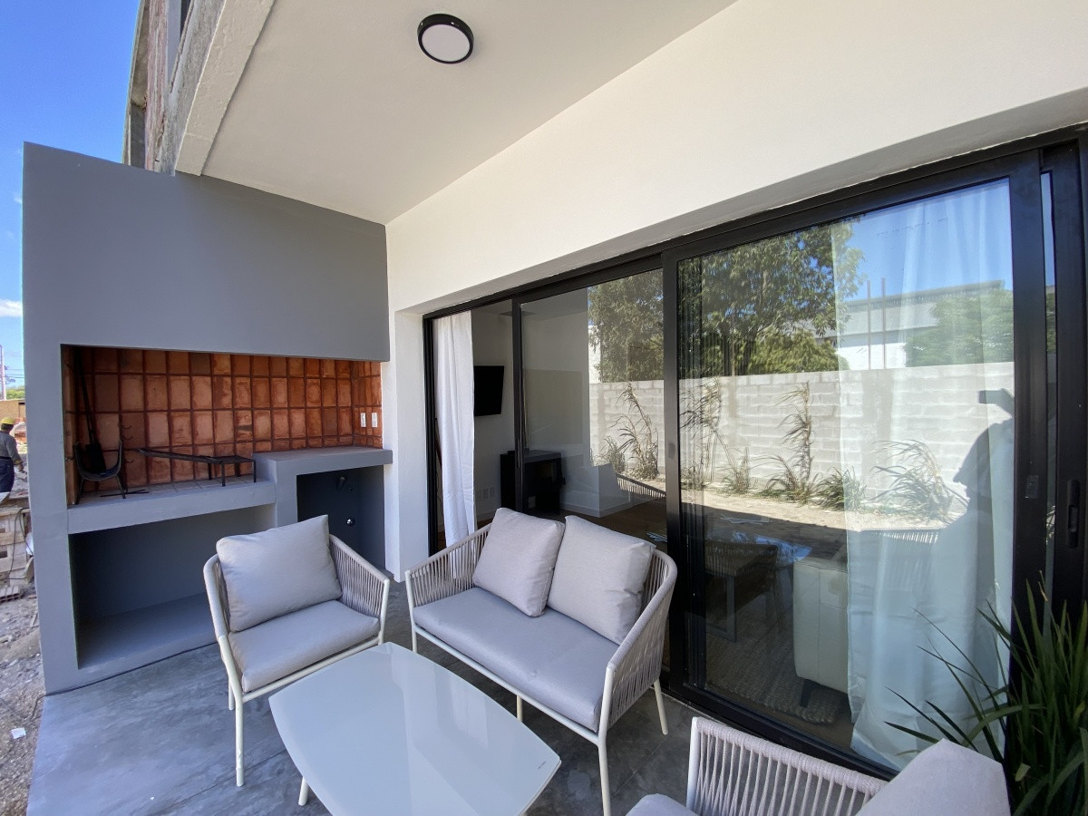 Living comedor con salida a parrillero y jardín Cocina integrada 3 dormitorios 2 baños, uno en suite Cochera para 1 auto