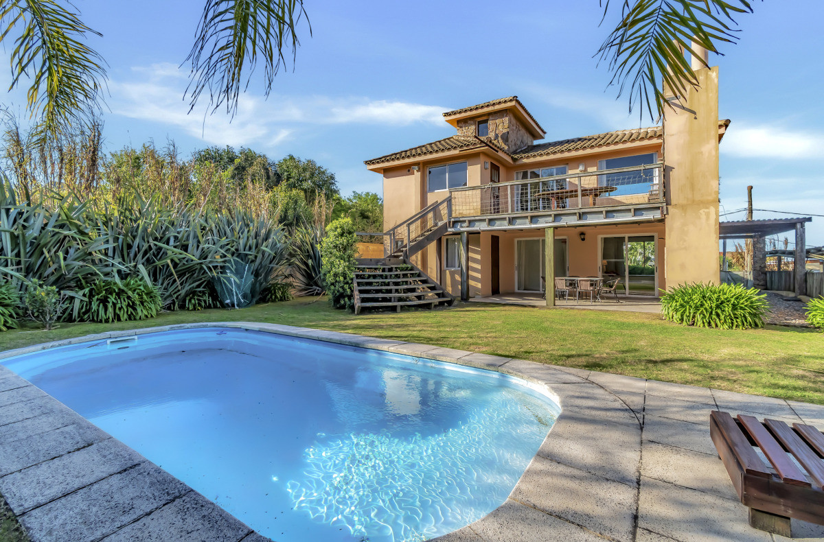 Muy linda casa cerquita del mar Living comedor muy luminoso con estufa a leña y salida a la terraza con parrillero 4 dormitorios, todos amplios, dos de ellos en suite, con aire acondicionado Toilette Cocina amplia y luz natural con salida al parrillero Cabe destacar que esta propiedad cuenta con dos parrilleros, uno en planta alta donde se encuentra el living comedor y se logra una excelente vista y otro en planta baja cercano a la piscina Dormitorio de servicio con baño completo Piscina